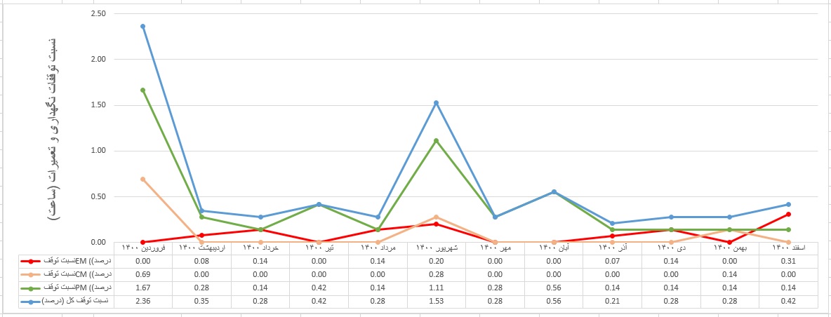 فرم اکسل محاسبه روند شاخص انواع توقفات نگهداری و تعمیرات